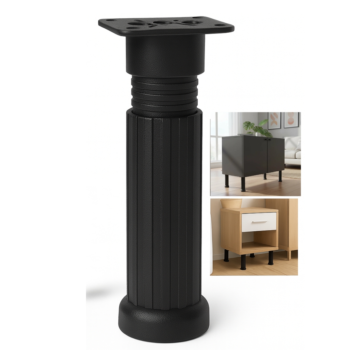 Pé para Moveis Preto Plastico Regulável Minimo 17cm Maximo 24cm