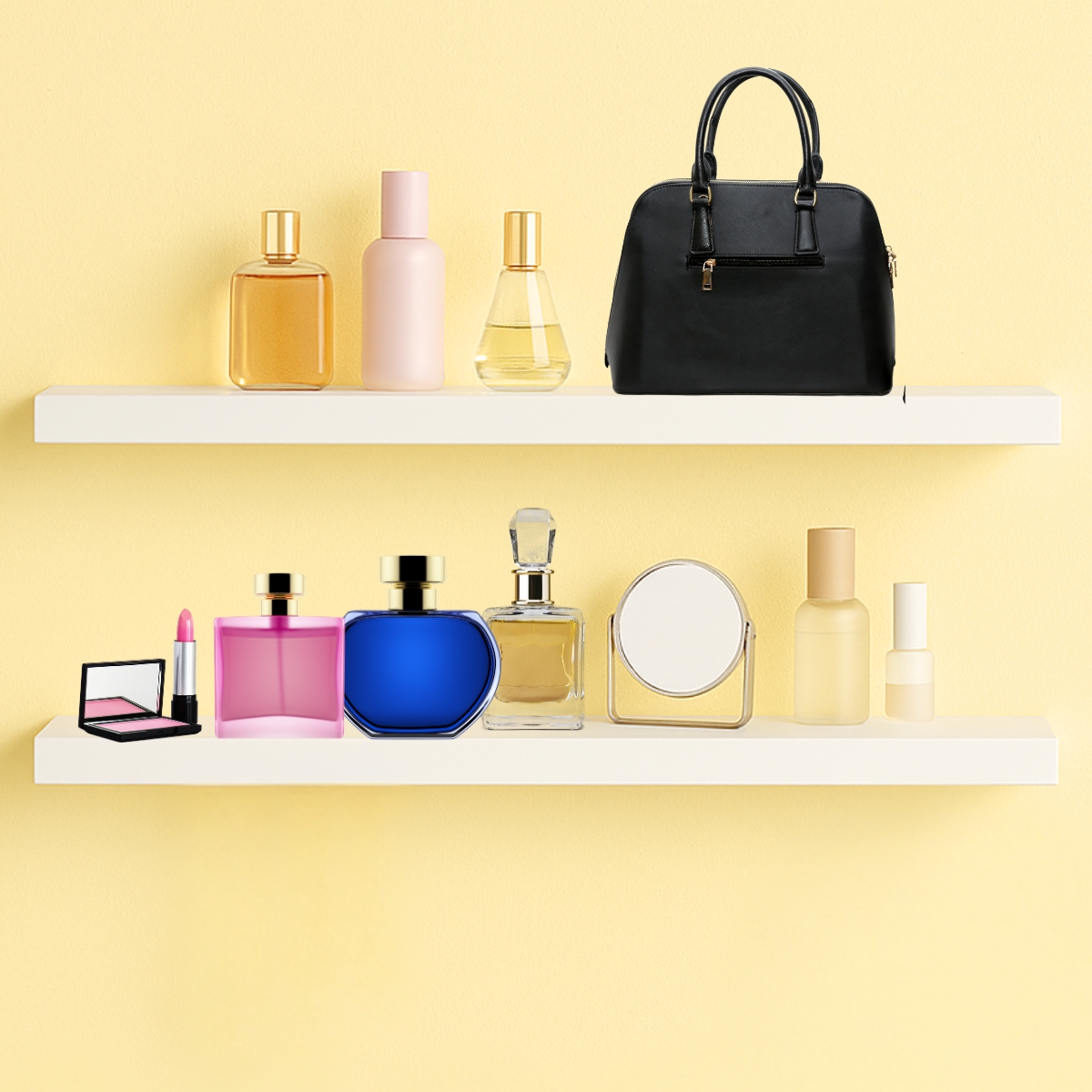 Aplicação: Produto de fácil instalação, toda a montagem pode ser feita com apenas uma furadeira/parafusadeira comum. A ausência de mãos francesas aparentes proporciona a liberdade de decorar conforme a sua criatividade, sem comprometer a estética visual do ambiente. Além disso, a prateleira oferece vantagens de economia de espaço e ausência de poluição visual.